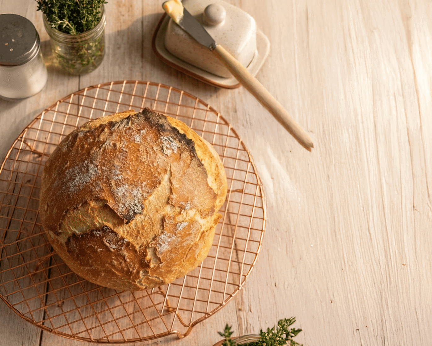 Chleb równie dobrze upiecze się w szklanym naczyniu żaroodpornym z pokrywką lub w naczyniu ceramicznym. Najważniejsze jest to, aby naczynie miało szczelną pokrywkę, która zatrzyma parę wodną wewnątrz podczas pierwszej fazy pieczenia. Dzięki temu skórka będzie cienka i chrupiąca.